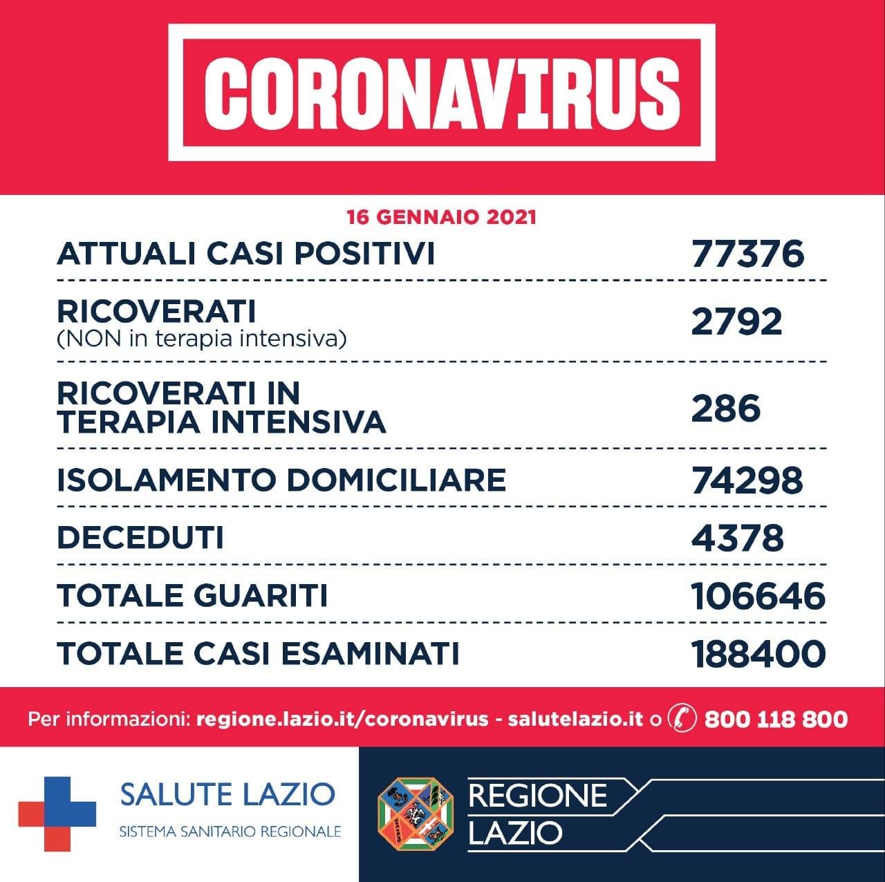 Nella Asl di Frosinone si registrano 89 nuovi casi e si tratta di casi isolati a domicilio, contatti di un caso già noto o con link familiare. Si registrano quattro decessi di 77, 83, 88 e 99 anni con patologie.