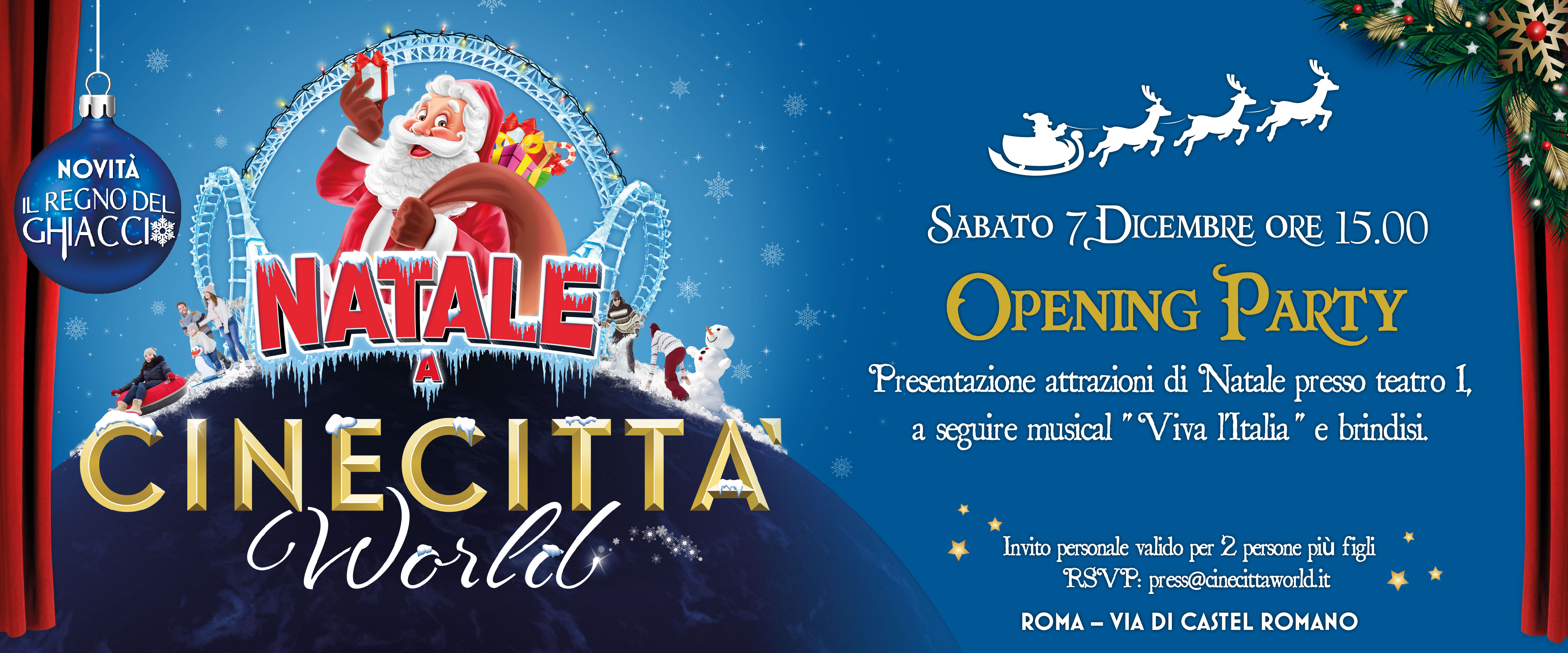 Dall’ 1 dicembre al 6 gennaio si accendono le luci di Natale a Cinecittà World e i visitatori vivranno da protagonisti la magica atmosfera natalizia.