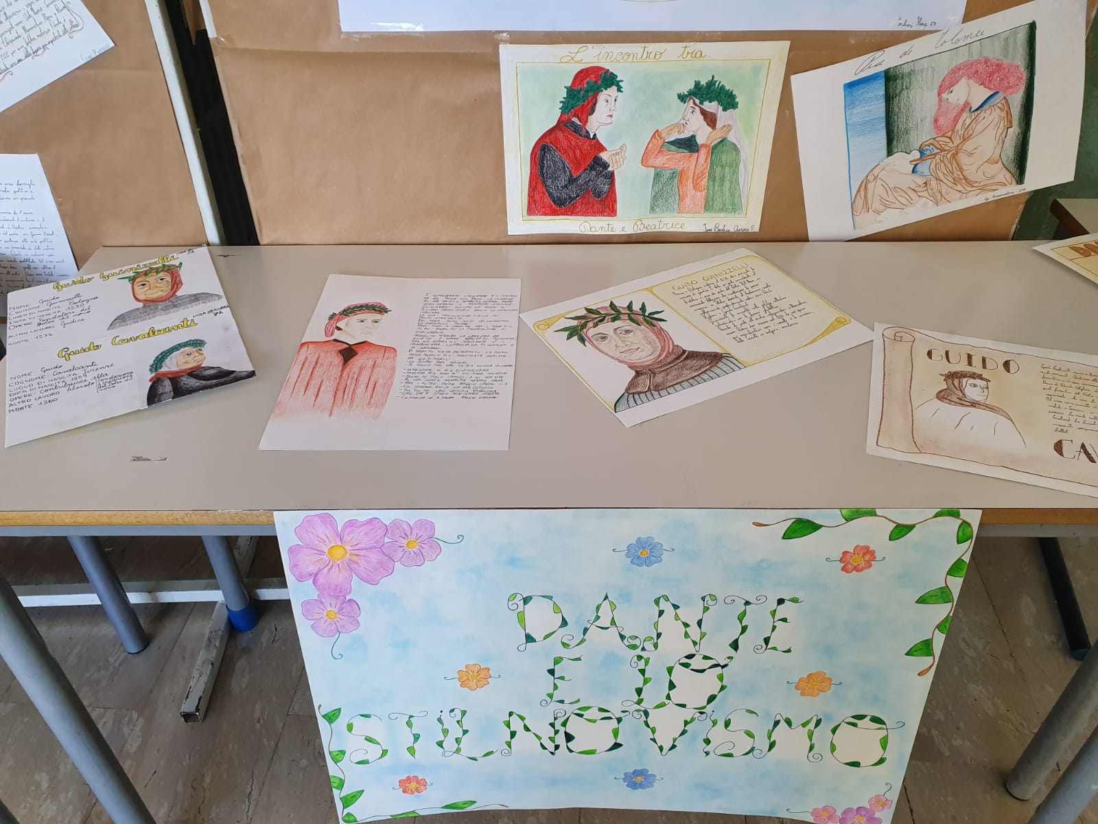 L’Istituto Comprensivo Pascoli onora Dante Alighieri. In occasione del “Dantedì”, giorno dedicato al Sommo Poeta - che come ogni anno cade il 25 marzo - gli alunni delle classi 2a A, 2a G, 2a H, 2a L e 1a H dell’Istituto Comprensivo “Pascoli” di Aprilia, coordinati dalle professoresse Gledis Baravelli, Claudia Mammucari, Loredana Melgiovanni ed Anna Pugliese hanno allestito una piccola mostra con disegni e plastici che illustrano la struttura dei regni ultraterreni attraversati da Dante insieme alle sue tre guide, ritratti di Dante, Beatrice, Virgilio e vari episodi tratti dalle tre cantiche (p.e. dalla prima l’ingresso nell’Inferno, l’arrivo di Caronte, l’episodio di Paolo e Francesca; dalla seconda l’incontro con Pia de’ Tolomei e, nel Paradiso terrestre, con Beatrice; dalla terza l’incontro con Cacciaguida, il trisavolo di Dante) ed anche del suo ruolo nello Stilnovismo (con ritratti anche di Guido Cavalcanti e Guido Guinizzelli).