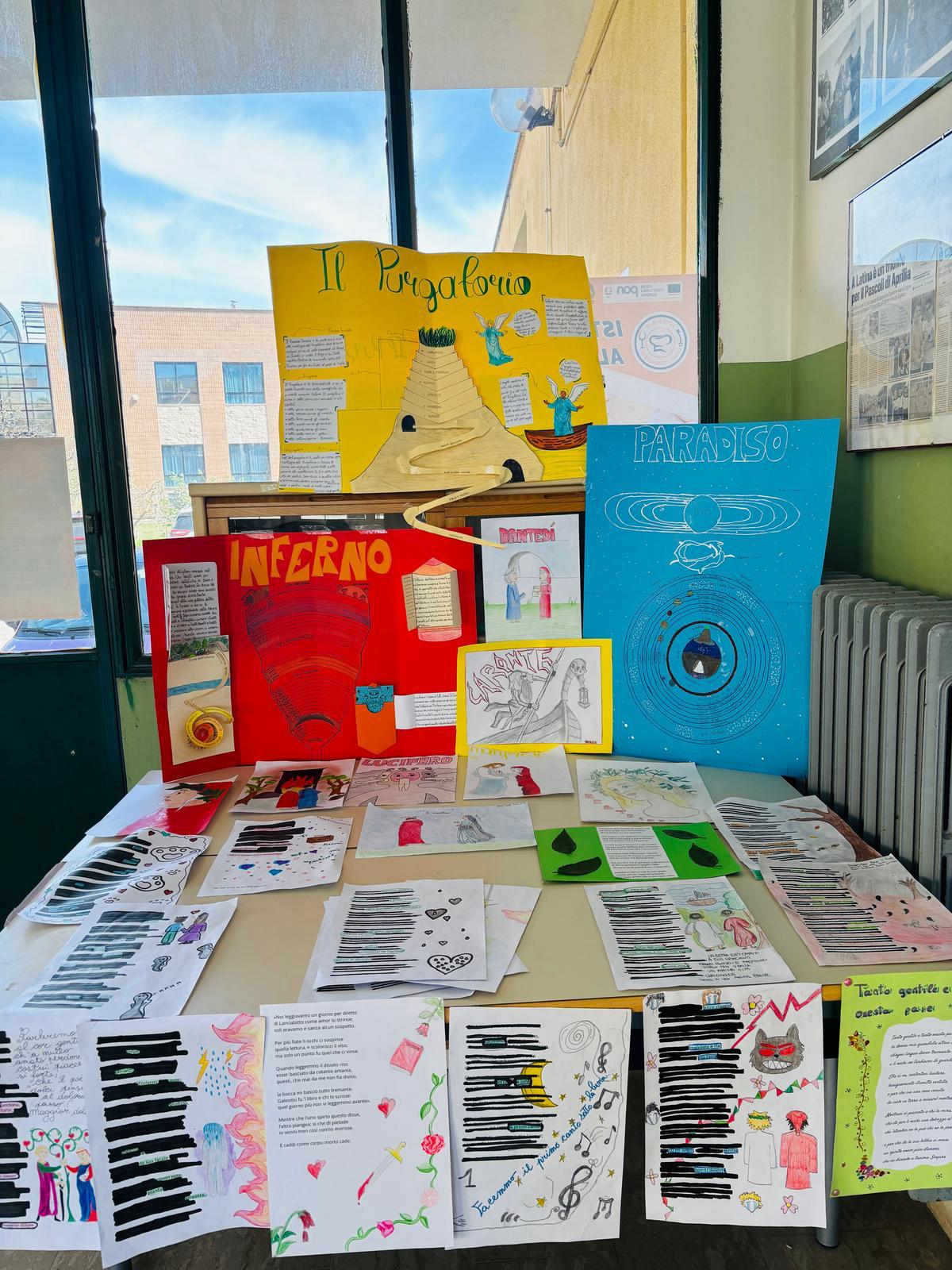 L’Istituto Comprensivo Pascoli onora Dante Alighieri. In occasione del “Dantedì”, giorno dedicato al Sommo Poeta - che come ogni anno cade il 25 marzo - gli alunni delle classi 2a A, 2a G, 2a H, 2a L e 1a H dell’Istituto Comprensivo “Pascoli” di Aprilia, coordinati dalle professoresse Gledis Baravelli, Claudia Mammucari, Loredana Melgiovanni ed Anna Pugliese hanno allestito una piccola mostra con disegni e plastici che illustrano la struttura dei regni ultraterreni attraversati da Dante insieme alle sue tre guide, ritratti di Dante, Beatrice, Virgilio e vari episodi tratti dalle tre cantiche (p.e. dalla prima l’ingresso nell’Inferno, l’arrivo di Caronte, l’episodio di Paolo e Francesca; dalla seconda l’incontro con Pia de’ Tolomei e, nel Paradiso terrestre, con Beatrice; dalla terza l’incontro con Cacciaguida, il trisavolo di Dante) ed anche del suo ruolo nello Stilnovismo (con ritratti anche di Guido Cavalcanti e Guido Guinizzelli).