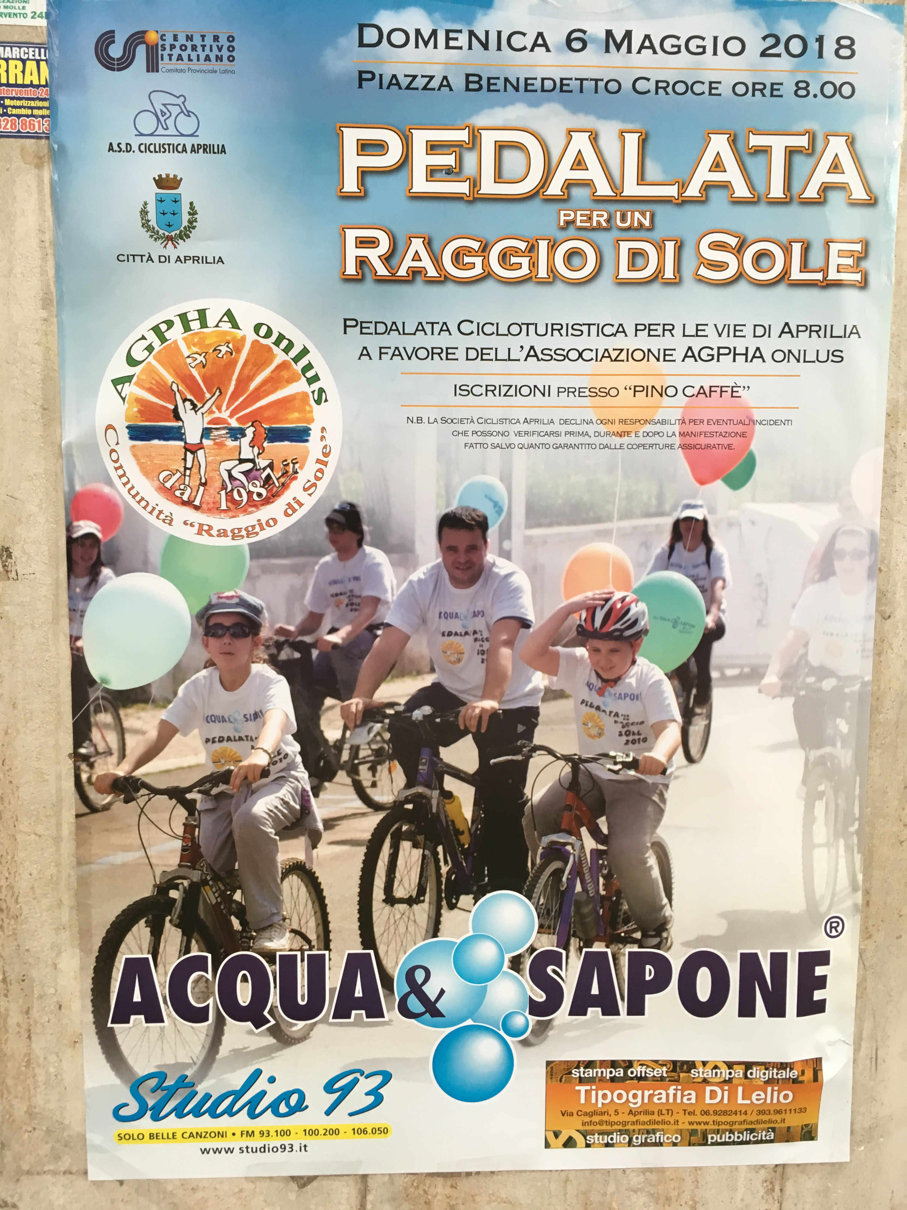 Questa domenica 6 maggio ad Aprilia torna la tradizionale “Pedalata per un Raggio di Sole” organizzata dall’Agpha, l’Associazione dei Genitori di portatori di handicap, e dalla Società Ciclistica Apr...