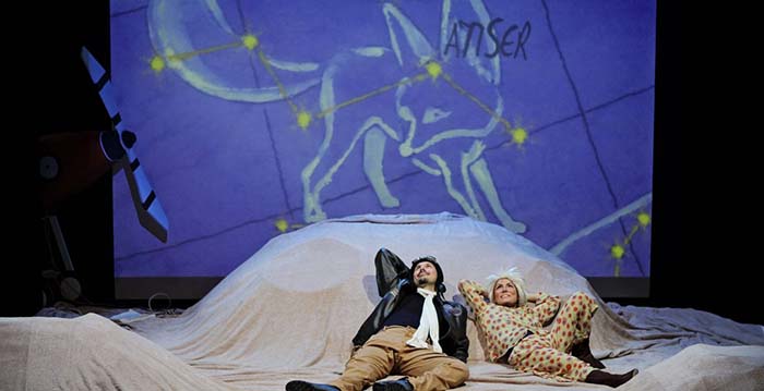 Il regista Gigi Palla “Abbiamo voluto inserire nella drammaturgia un elemento di approfondimento in più, quello della conoscenza del cosmo, delle sue galassie, delle sue costellazioni, dei suoi pianeti e dei suoi asteroidi, senza nulla perdere delle suggestioni dell’opera di Saint-Exupery con gli incontri del piccolo principe con i personaggi bizzarri e poetici, tutti portatori di un modo puro di affrontare la vita e l’esistenza che rende ancora valido e affascinante il messaggio di quest’opera, alla base del quale si incide la massima più celebre: l’essenziale è invisibile agli occhi.