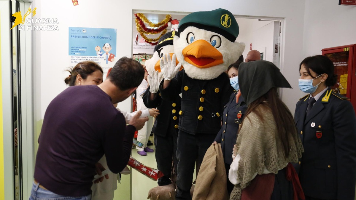Una rappresentanza del I Gruppo del Comando Provinciale della Guardia di Finanza di Roma, nel solco di una consolidata tradizione, ha fatto visita al Policlinico “Agostino Gemelli”, presso il Reparto di Oncologia Pediatrica, per portare un messaggio di vicinanza e donare un sorriso ai piccoli pazienti e alle loro famiglie.