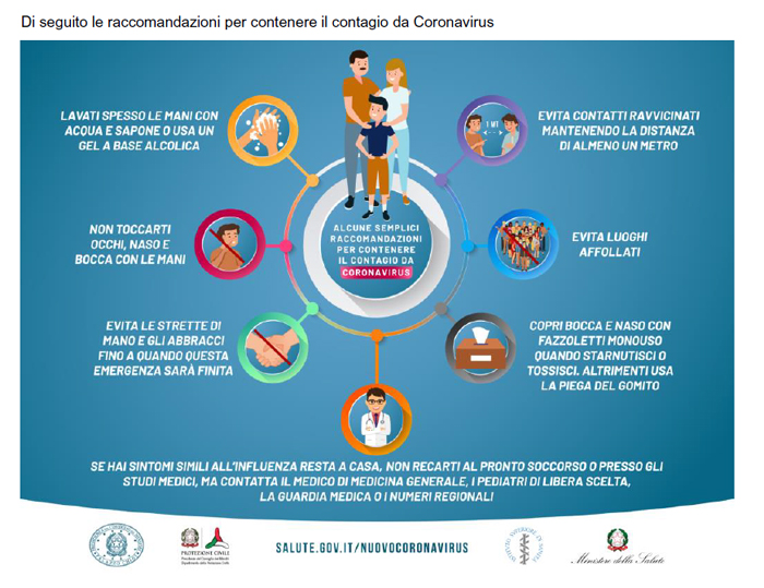 Di seguito le raccomandazioni per contenere il contagio da Coronavirus: