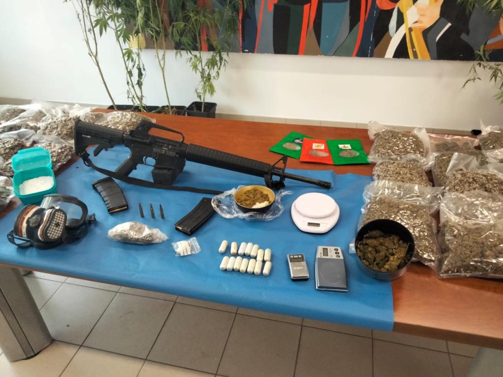In arresto un 28enne italiano ma non residente ad Aprilia trovato in possesso di n. 850 piante di marijuana di altezza media mt. 2, coltivate in una serra sotterranea con esclusivo accesso tramite botola celata da mattonato retrostante l’abitazione, n. 15 involucri per un totale di gr. 175 di cocaina, n. 35 involucri da gr. 410 circa cadauno per un totale complessivo di kg. 14 di marjiuana essiccata, gr. 215 di sostanza stupefacente del tipo hashish, gr. 125 di sostanza da taglio in polvere di colore bianco, n. 3 bilancini elettronici di precisione, materiale per il confezionamento, nonché un fucile marca Ruger AR 15, con matricola abrasa, e 2 caricatori contenenti complessivamente 48 cartucce calibro 5,56.