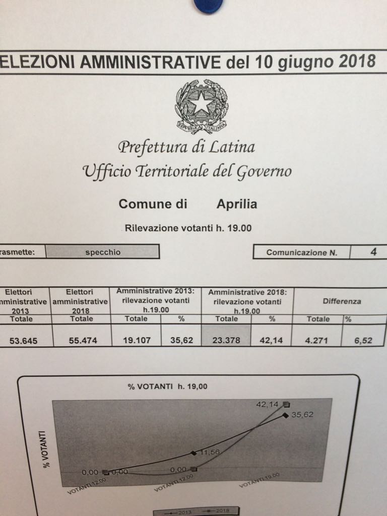 Elezioni ad Aprilia- Alle 19 ha votato il 42,14%% degli elettori