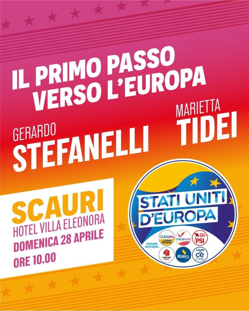 Questa domenica 28 Aprile, alle 10.00, presso Villa Eleonora a Scauri, ci sarà “Il primo passo verso l’Europa” di Gerardo Stefanelli, in cammino per le elezioni europee dell’8 e 9 Giugno. L’annuncio ufficiale era avvenuto lo scorso venerdì 19 Aprile a Civitavecchia con Marietta Tidei, quando il leader di Italia Viva Matteo Renzi li aveva presentati come candidati del Lazio nel Collegio dell’Italia Centrale, illustrando il progetto politico degli Stati Uniti d’Europa.