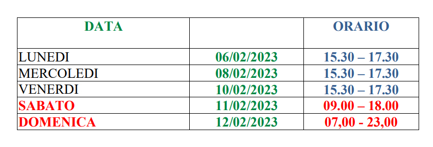 Domani e venerdì 10 Febbraio l’ufficio anagrafe sarà aperto anche nel pomeriggio, dalle 15.30 alle 17.30; sabato 11 Febbraio dalle 9.00 alle 18.00 e domenica 12 febbraio dalle 7.00 alle 23.00.