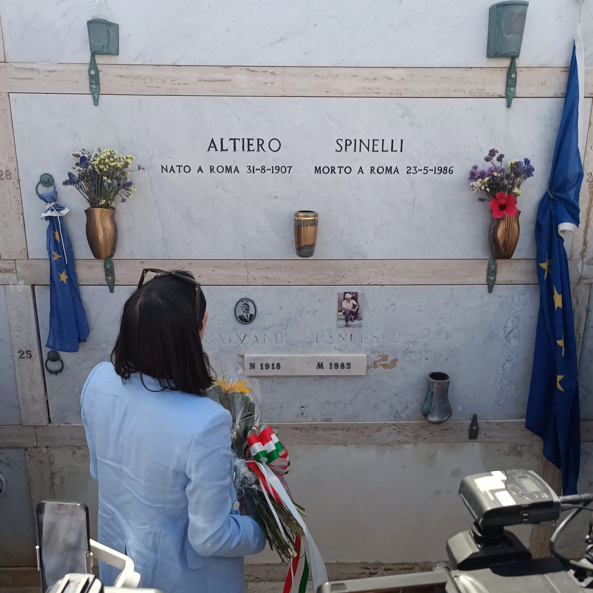 La segreteria del Pd ieri ha omaggiato la tomba di Altiero Spinelli, deponendo un mazzo di fiori avvolto da un nastro tricolore. Nella stessa area del cimitero la segretaria Dem ha reso omaggio anche alla tomba di Luciano Bolis, la cui lapide recita ‘federalista della prima ora’.