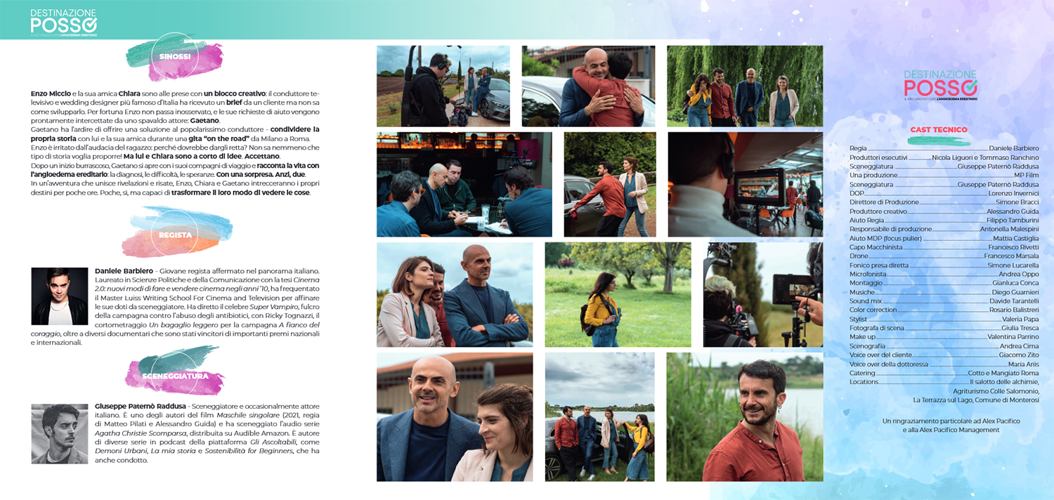 Il corto è il fulcro della campagna di sensibilizzazione “Destinazione Posso – Il mio viaggio con l’angioedema ereditario” promossa da Takeda Italia con il patrocinio di A.A.E.E. – Associazione volontaria per l’angioedema ereditario ed altre forme rare di angioedema, ITACA – Italian Network for Hereditary and Acquired Angioedema e UNIAMO – Federazione Italiana Malattie Rare. L’angioedema ereditario ‘sospende’ il futuro, la vita dei pazienti è scandita dall’ansia e dall’incertezza per l’imprevedibilità della malattia e la minaccia costante degli attacchi. Il senso di vulnerabilità e di impotenza generati dall’angioedema ereditario, la diagnosi tardiva e l’impatto sulla qualità della vita sono difficilmente comprensibili per gli altri e per gli stessi medici. La campagna vuole inaugurare una nuova narrazione dell’angioedema ereditario attraverso la conoscenza, il senso di positività e la fiducia nel futuro, offrire supporto emotivo ai pazienti e favorire la connessione virtuosa tra pazienti, specialisti e Centri di riferimento che fanno capo al network ITACA.