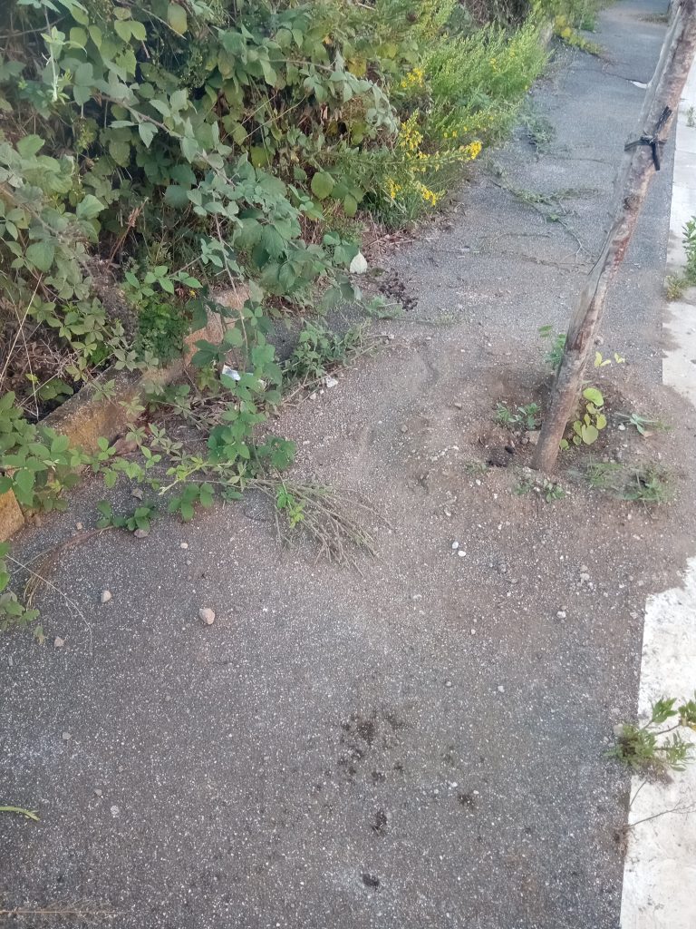 Lanuvio – Campoleone, gincana sul marciapiede di via Impastato, tra erbacce, rovi, cacche e terra. Siamo a pochi metri dal Campus Scolastico di Campoleone, che raggruppa all'interno il plesso Scuola dell'Infanzia “Italo Calvino”, il plesso Scuola Primaria “Gianni Rodari”, il plesso Scuola Media “A. Galieti”. La denuncia arriva da Nazareno Ferrazza, presidente dell’Associazione Culturale Il Mondo delle Idee.