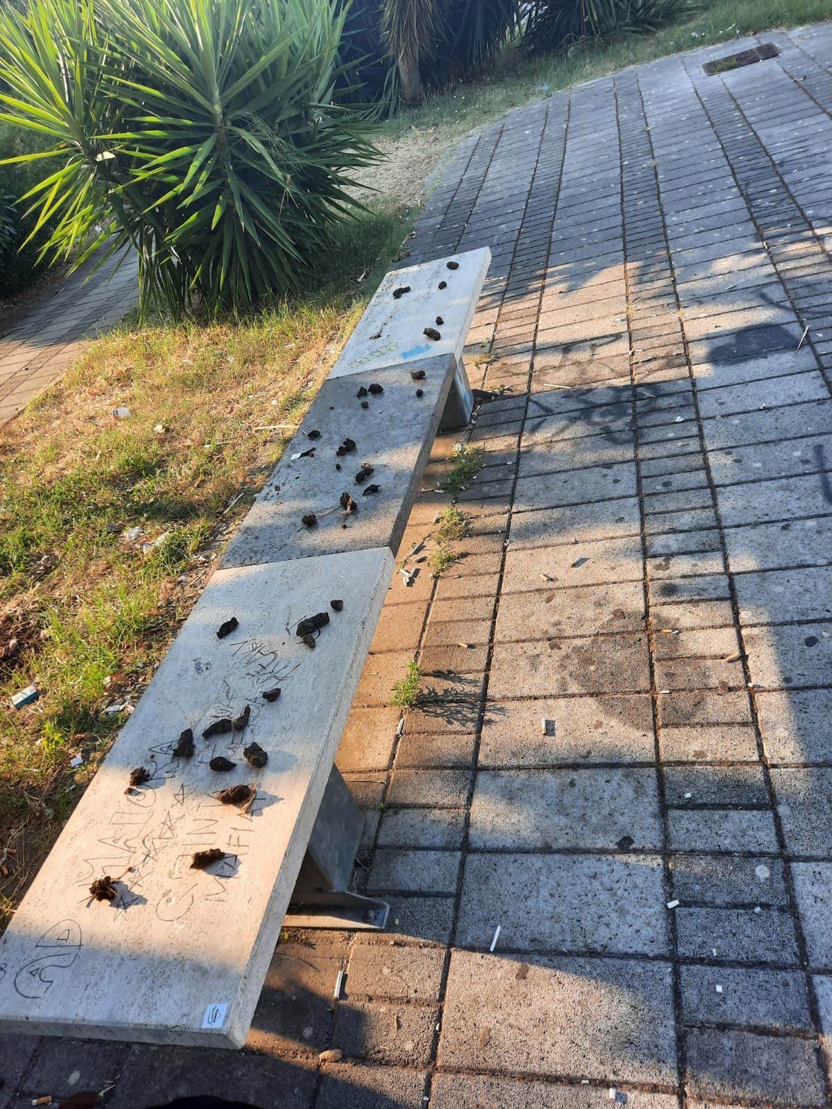 Escrementi, molto probabilmente umani, cosparsi sulle panchine a Cisterna.