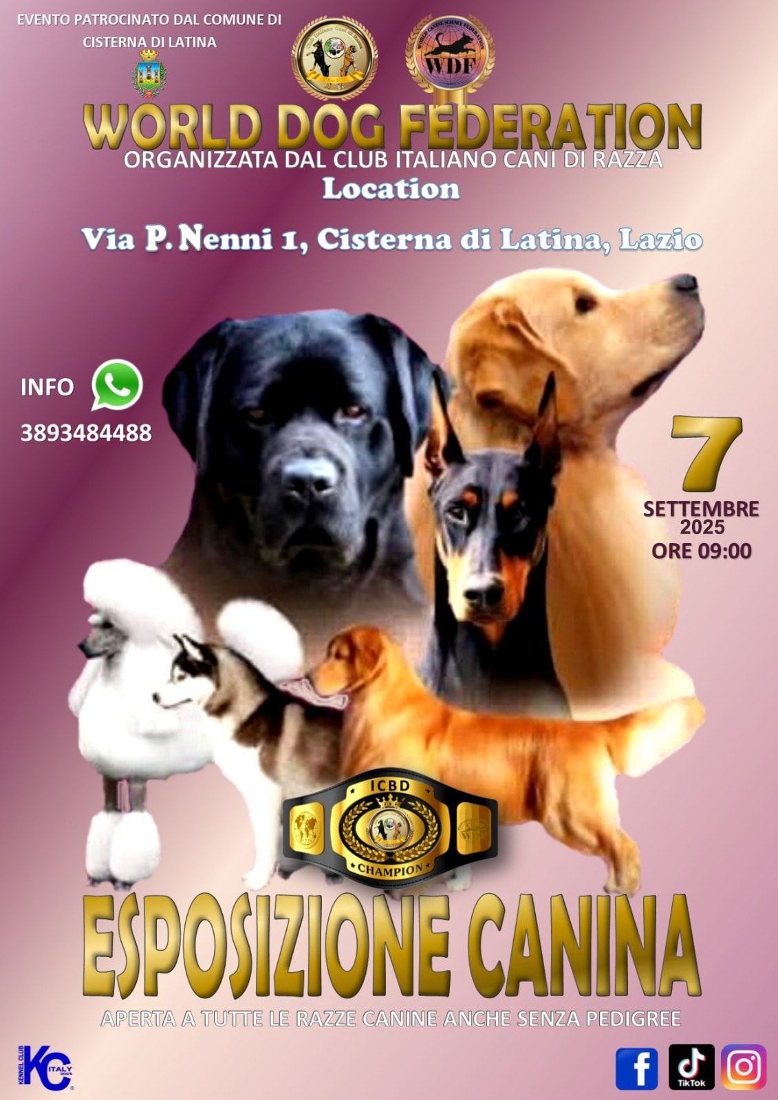 Esposizione canina questa domenica 7 Settembre a Cisterna.