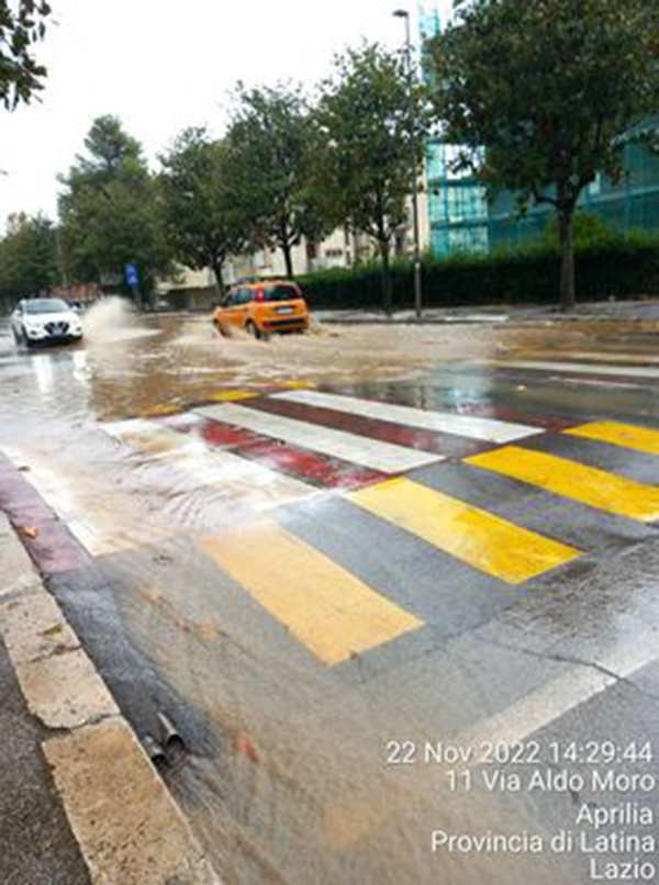 Fallimentari i lavori di regimentazione delle acque meteoriche, realizzati dal Comune di Aprilia lo scorso mese di febbraio, lungo via Aldo Moro. La situazione che si è presentata oggi, dopo una nott...