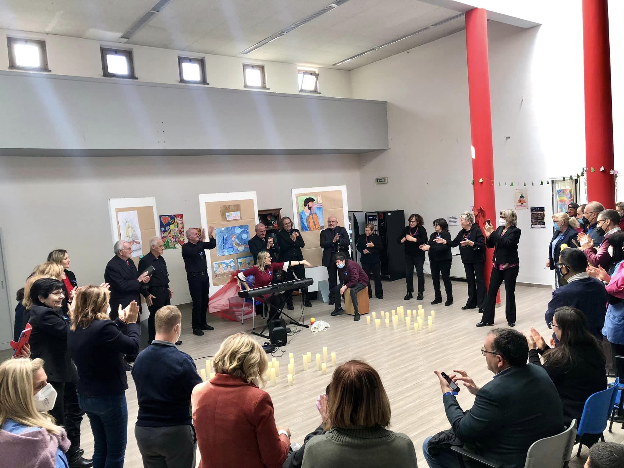 I ragazzi del centro, insieme ai Liberi Cantores, hanno cantato e ballato sulle note dei classici natalizi. Al termine dello spettacolo gli ospiti del centro hanno donato agli amministratori due quadri realizzati in queste settimane.