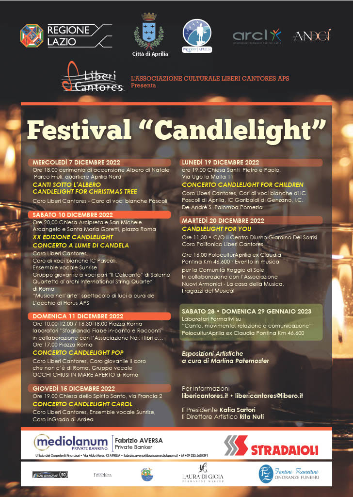 Festival “Candlelight”: canti tradizionali natalizi questo giovedì alla chiesa di Santo Spirito ad Aprilia.