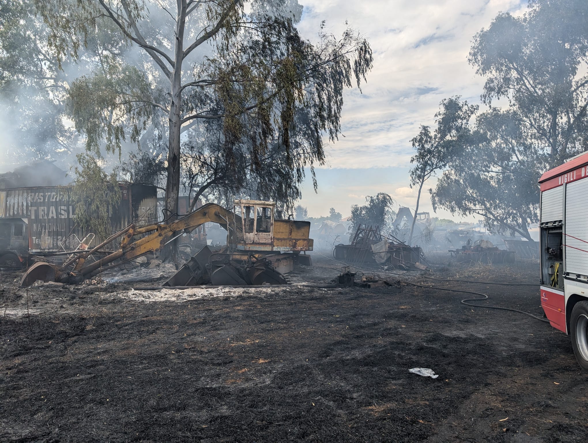 Fiamme in via Torre del Padiglione, ad Aprilia. Un grosso incendio di sterpaglie avvolge un vecchio casale, dei mezzi agricoli in stato di abbandono e, purtroppo, anche degli ammassi di rifiuti. L’allarme è scattato questo pomeriggio poco dopo le 14.30. Sul posto sono dovute intervenire 6 mezzi dei vigili del fuoco e della protezione civile Alfa di Aprilia, con le autobotti. L’incendio è divampato all’interno di un’area privata di circa 6 ettari, al civico 12 di via Torre del Padiglione. Sul posto anche i Carabinieri.