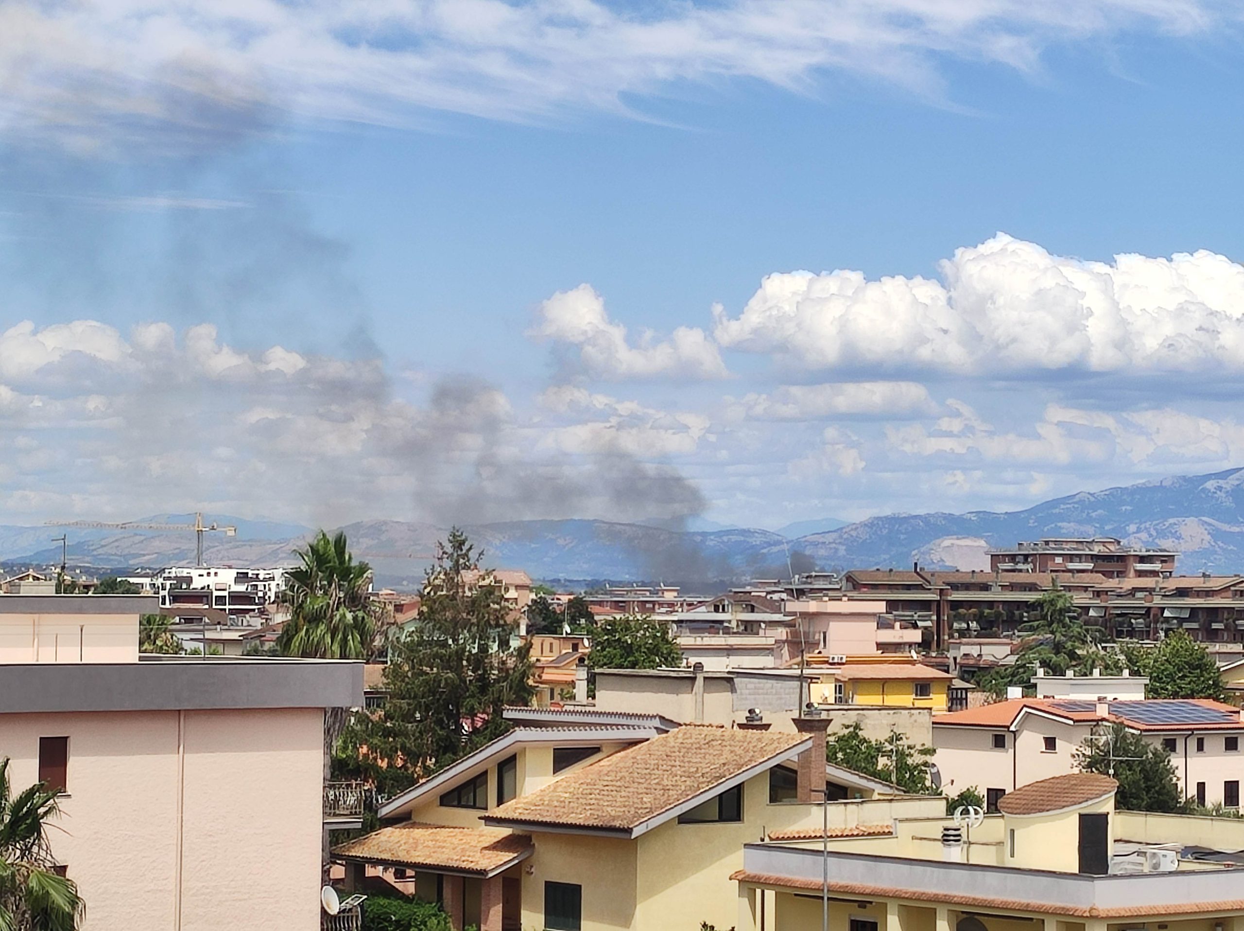 Fiamme in via Torre del Padiglione, ad Aprilia. Un grosso incendio di sterpaglie avvolge un vecchio casale, dei mezzi agricoli in stato di abbandono e, purtroppo, anche degli ammassi di rifiuti. L’all...