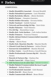 Secondo Forbes lo studio commercialista KSF Partners Law & Labor di Latina è tra i 25 più "competenti" d'Italia