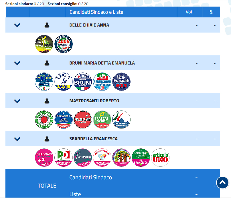 Prosegue lo spoglio nella città di Frascati. Si profila già un ballottaggio tra la candidata di centrosinistra Francesca Sbardella (41% dei voti), 41enne, di molto avanti al suo sfidante il sindaco u...