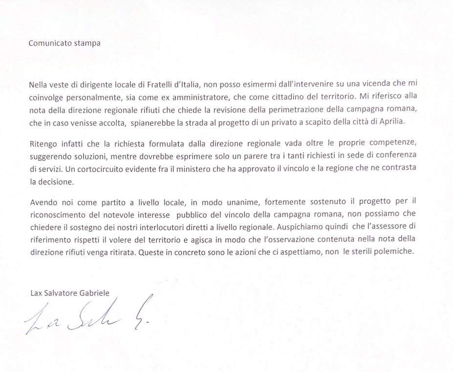 Frattura in FdI ad Aprilia sulla discarica, Lax critica la Regione: "Campagna romana fondamentale, rispettare territorio".