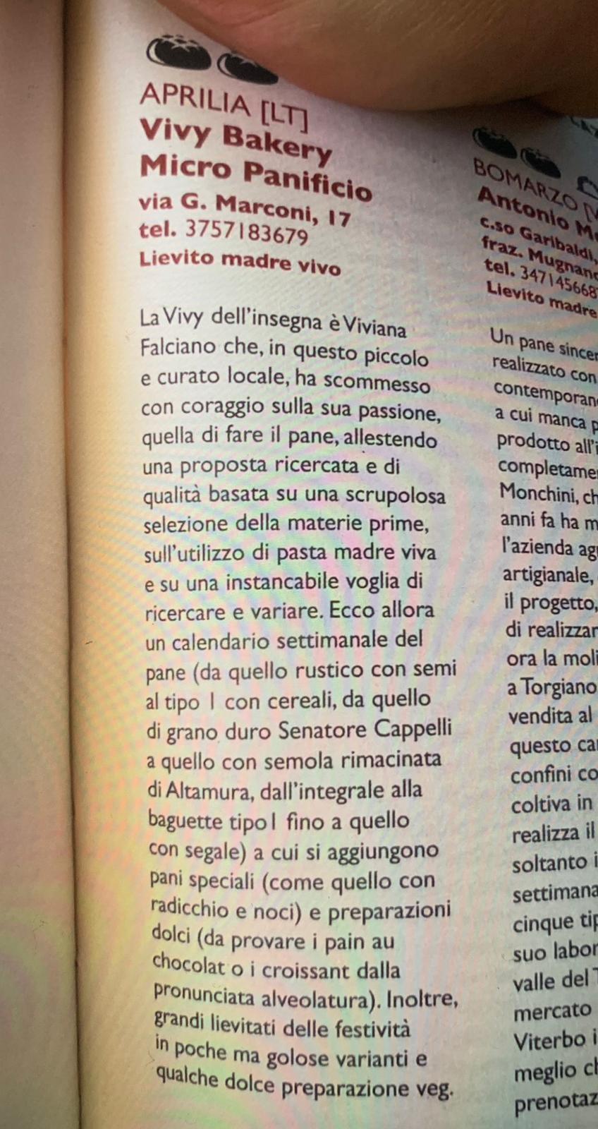 Anche quest’anno - ha commentato entusiasta Viviana - sono felicissima di poter festeggiare il riconoscimento ricevuto dal Gambero Rosso. Questa volta ancor di più emozionante, perchè “Vivy Bakery” ha ricevuto ben 2 Pani!