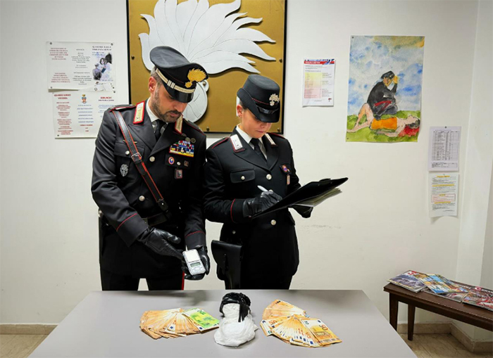 A seguito di perquisizione personale e veicolare, i Carabinieri hanno rinvenuto nella disponibilità dei due soggetti, la somma in contanti di 7.620 euro in banconote di vario taglio, ritenuta provento di attività illecita, un bilancino di precisione e materiale vario per il confezionamento.