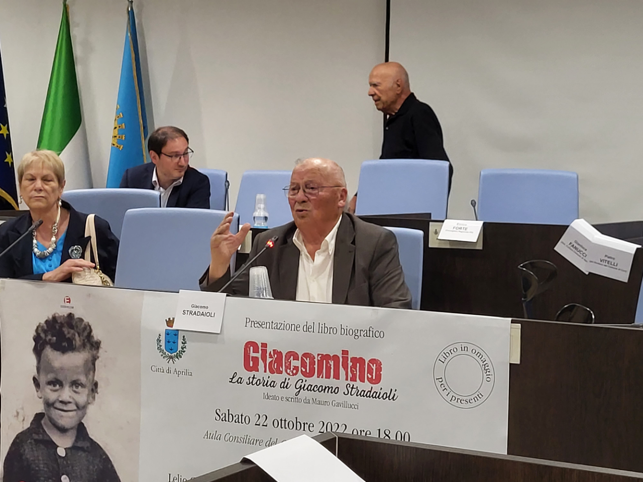 “Giacomino. La storia di Giacomo Stradaioli”: pomeriggio letterario lo scorso sabato in Aula Consiliare, ad Aprilia. Nell’ambito della rassegna culturale “Mille e un autore”, è stato presentato al pubblico il libro ideato e curato da Mauro Gavillucci.