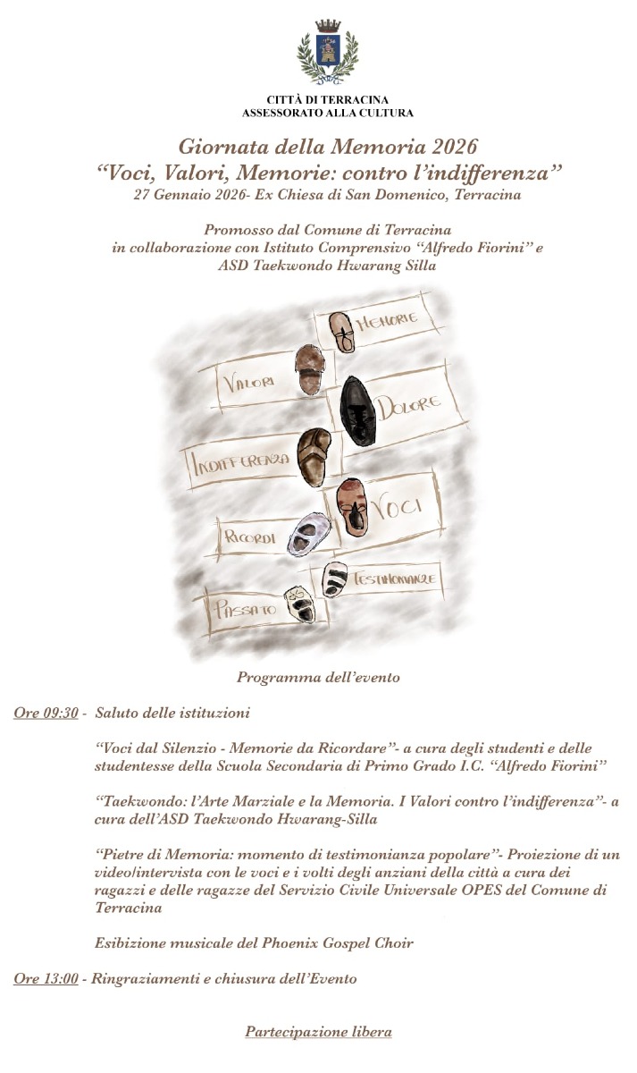 Giornata della Memoria, a Terracina l'evento "Voci, Valori, Memorie: contro l'indifferenza"