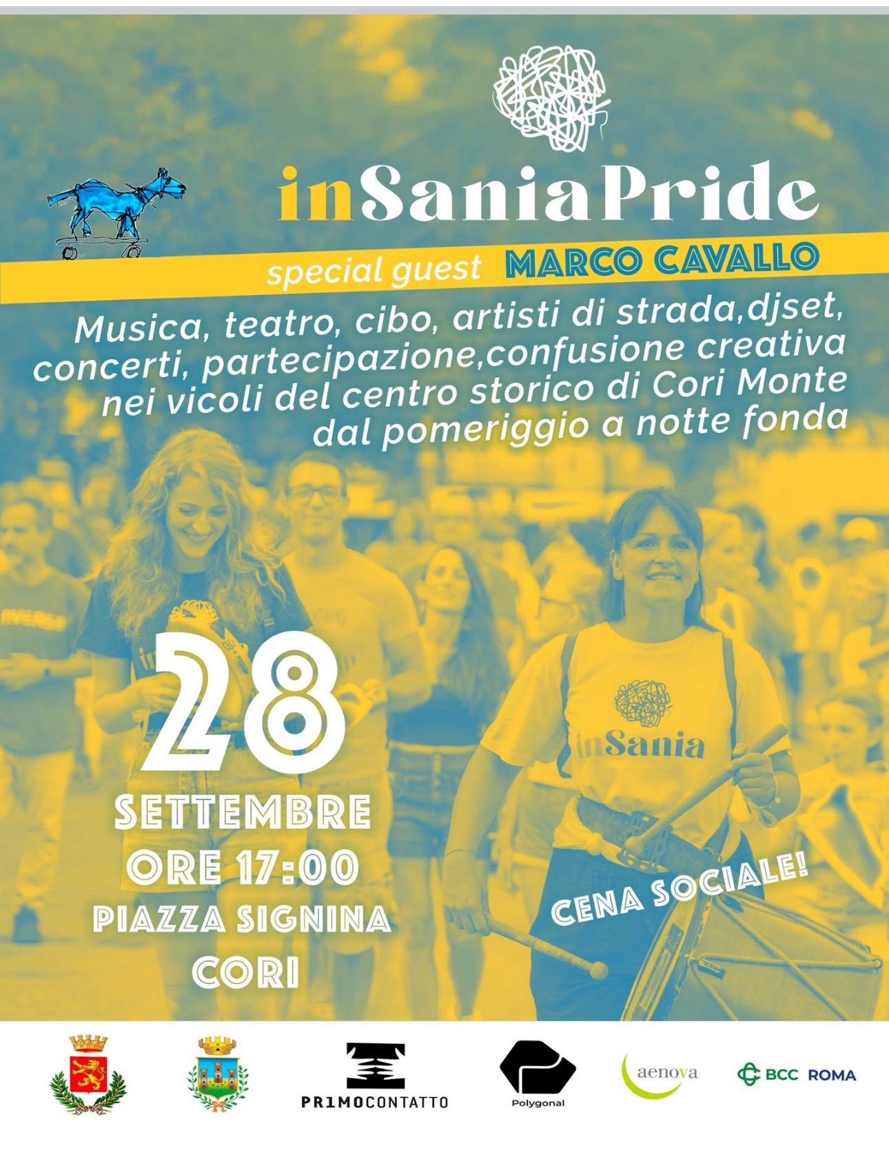 Questa domenica 28 settembre è la giornata dell’inSania pride, una manifestazione che coinvolge tutto il centro storico di Cori monte, attraversato da un corteo rumoroso e colorato con tappe in una serie di angoli e piazzette in cui si esibiscono diversi artisti di strada: musicisti, attori, performers di ogni genere.