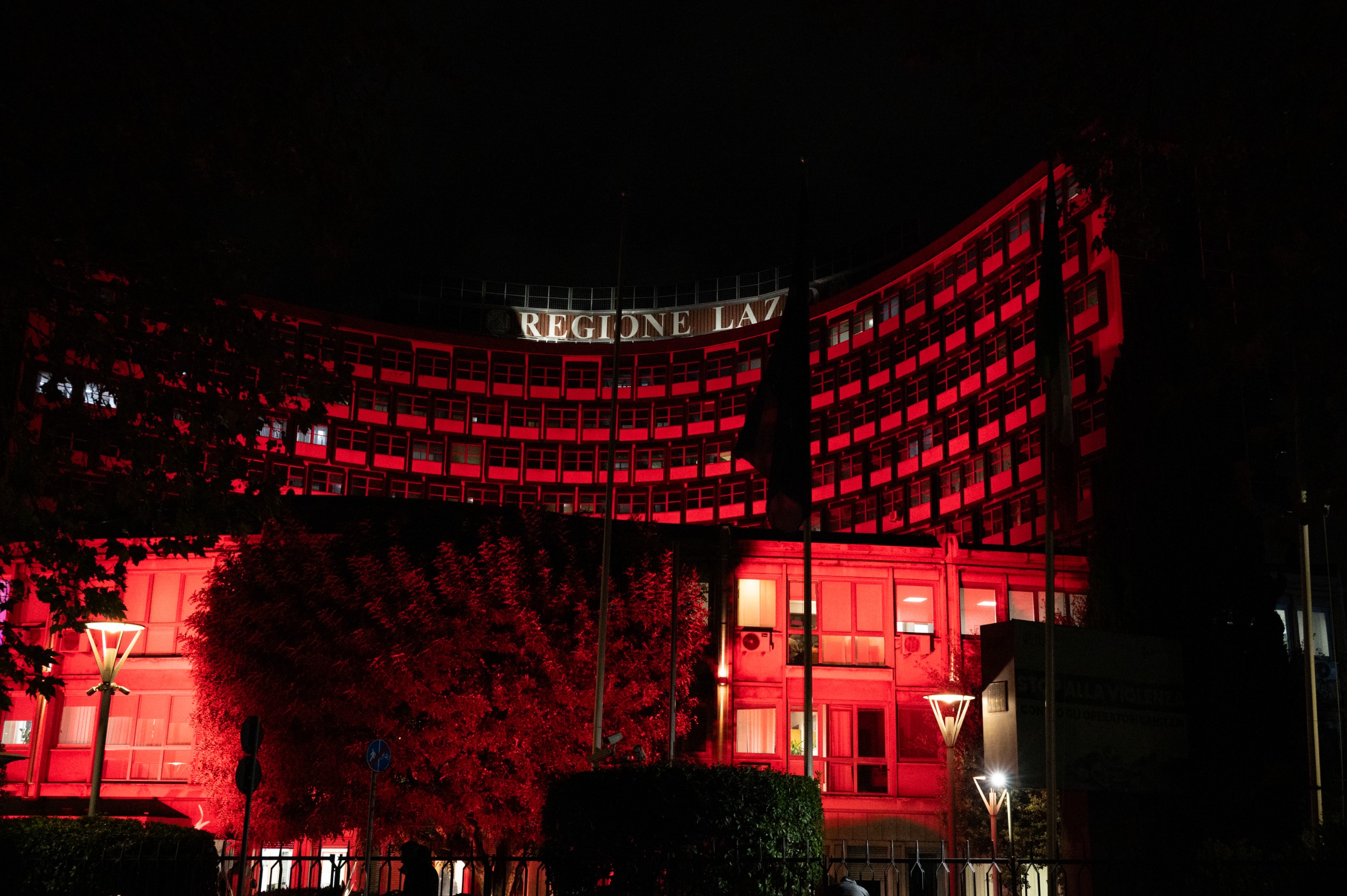 Nella serata di ieri, in occasione della Giornata internazionale contro la violenza sulle donne, il palazzo della Regione Lazio, in via Cristoforo Colombo a Roma, è stato illuminato di rosso fino alla mezzanotte, grazie alla collaborazione gratuita di Acea. Un gesto simbolico che ribadisce l’impegno della Regione nel contrasto alla violenza di genere.