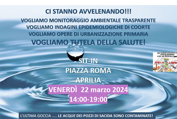 “Un anno fa, Aprilia Libera inviò una pec al sindaco Terra, alla ASL, all’ARPA e a tutti gli uffici ambientali e sanitari preposti della Regione Lazio, - spiegano i promotori dell’iniziativa - segnalando gravi problematiche ambientali e sociali e invitando gli enti ad adottare provvedimenti per la messa in sicurezza della salute e della vita dei cittadini, in presenza di risultanze anomale delle analisi di una mezza dozzina di pozzi per il prelievo di acqua ad uso alimentare e domestico.
