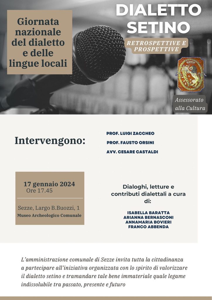 "In occasione della Giornata nazionale del Dialetto anche l’amministrazione comunale di Sezze scende in campo per difendere la tradizione e diffonderla a tutte le generazioni. Il dialetto è un patrimonio inestimabile di tutta la comunità e il Comune di Sezze pone una grande attenzione sul tema”.
