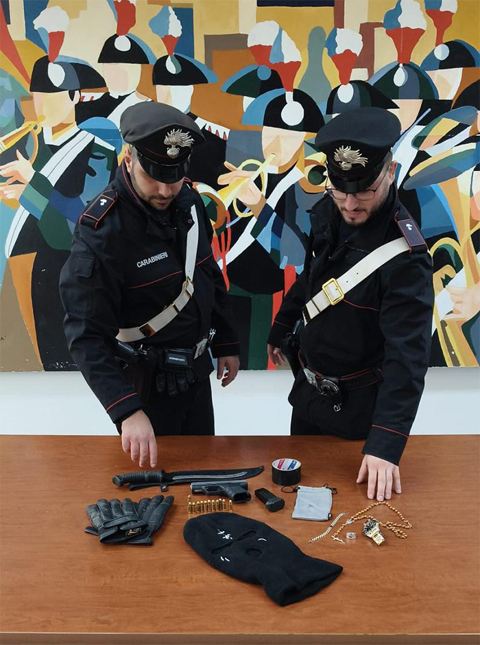 Girava in auto per le strade di Aprilia con pistola e munizioni. I Carabinieri, nel pomeriggio di ieri, hanno fermato e sottoposto a controllo un 24enne residente in Germania. Perquisito, il giovane è stato trovato in possesso di una pistola calibro 9, con la matricola parzialmente abrasa, di 12 proiettili dello stesso calibro e di un coltello da caccia; per lui è scattato immediato l’arresto per detenzione di arma clandestina ed il trasferimento in carcere a Latina; dovrà rispondere anche di porto d’armi e oggetti atti ad offendere.