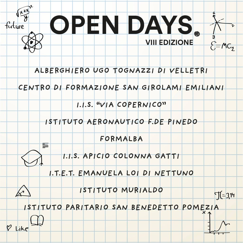 Si chiude questo sabato 26 ottobre ad Aprilia2 l’ottava edizione degli "Open Days", le giornate dedicate all’orientamento scolastico in cui giovani studenti delle medie insieme alle proprie famiglie potranno incontrare i ragazzi ed i docenti delle scuole superiori della provincia di Latina e Roma per approfondire l’offerta formativa e i programmi didattici.