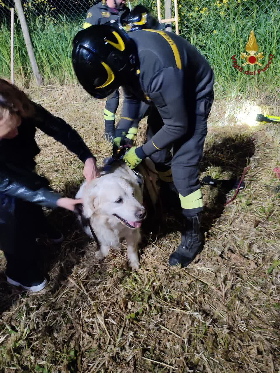 Golden retriver cade in una buca profonda più di tre metri, viene salvato dai Vigili del Fuoco.