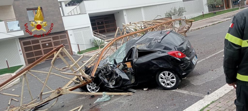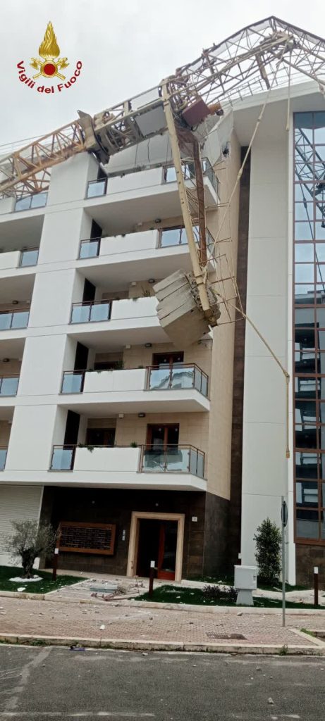 Durante la caduta una parte è crollata su di un balcone al 5 piano di un palazzo di sei piani, mentre una parte del braccio è crollata su di una autovettura, distruggendola.
