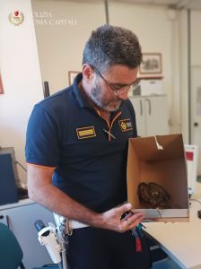 Roma - Era ferita e rannicchiata in un angolino a bordo strada su via della Moschea, la civetta che questa mattina è stata trovata e soccorsa da una pattuglia della Polizia Locale del II Gruppo Pario...