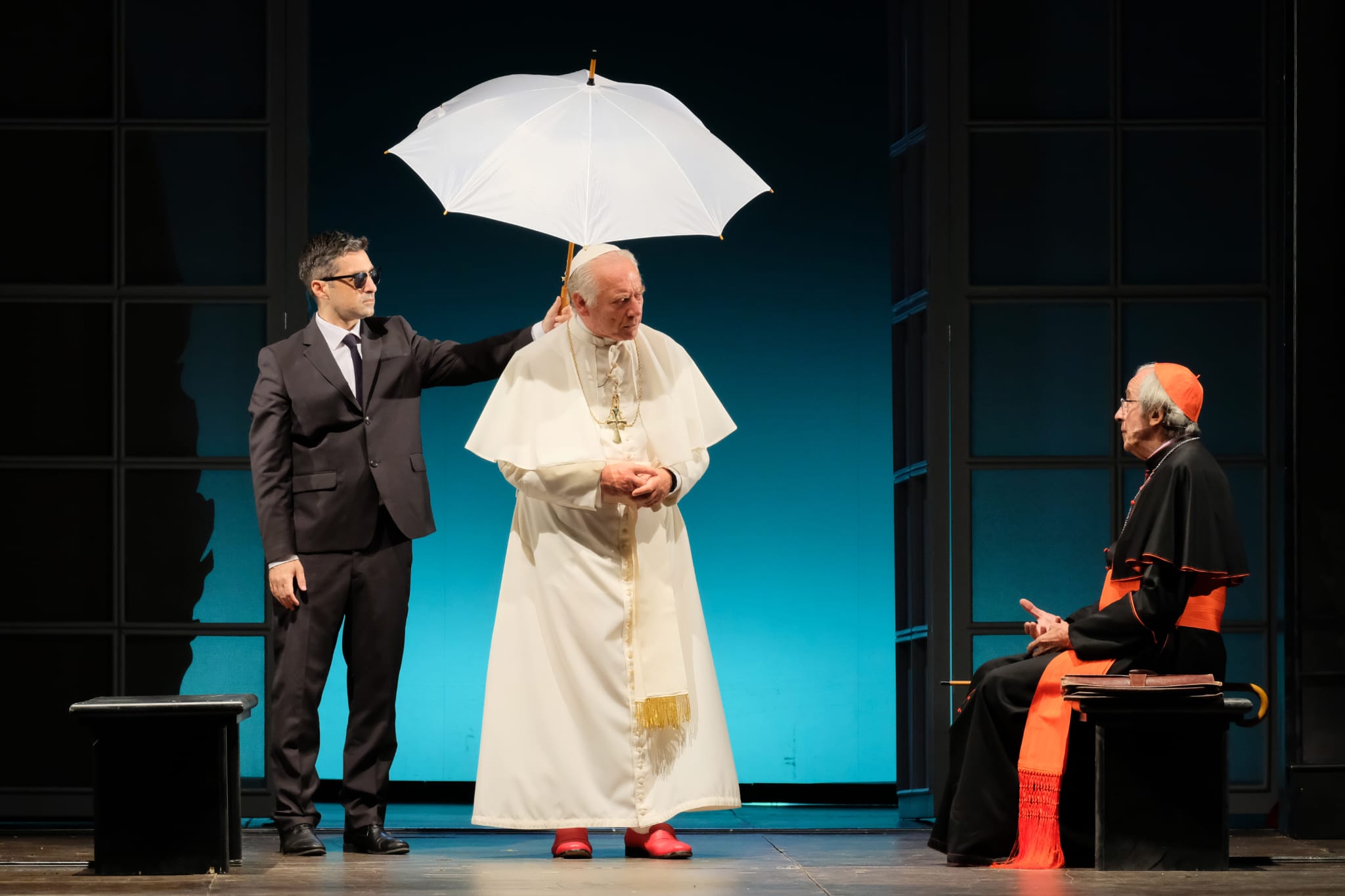 Una commedia di straordinaria forza emotiva con protagonisti due grandi attori del nostro panorama, Giorgio Colangeli e Mariano Rigillo, per raccontare il complesso rapporto tra Joseph Ratzinger e Jorge Mario Bergoglio, appena prima delle dimissioni di Benedetto XVI e della successiva elezione di Francesco nel 2013. Completano la compagnia Anna Teresa Rossini nel ruolo di Suor Brigitta e Ira Fronten nel ruolo di Suor Sofia.
