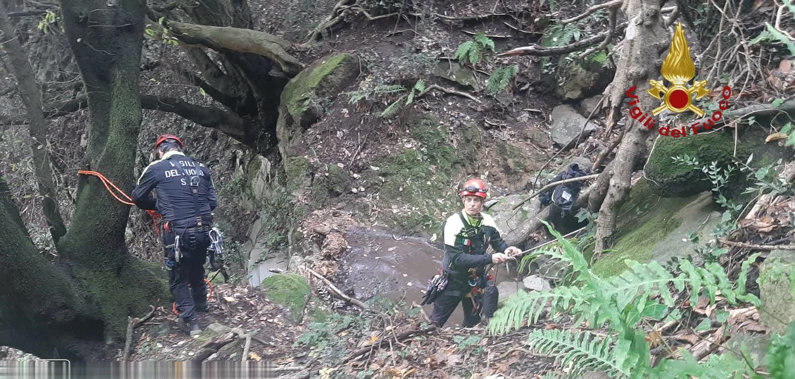 I Vigili del fuoco salvano due cani caduti in un dirupo a Nemi.