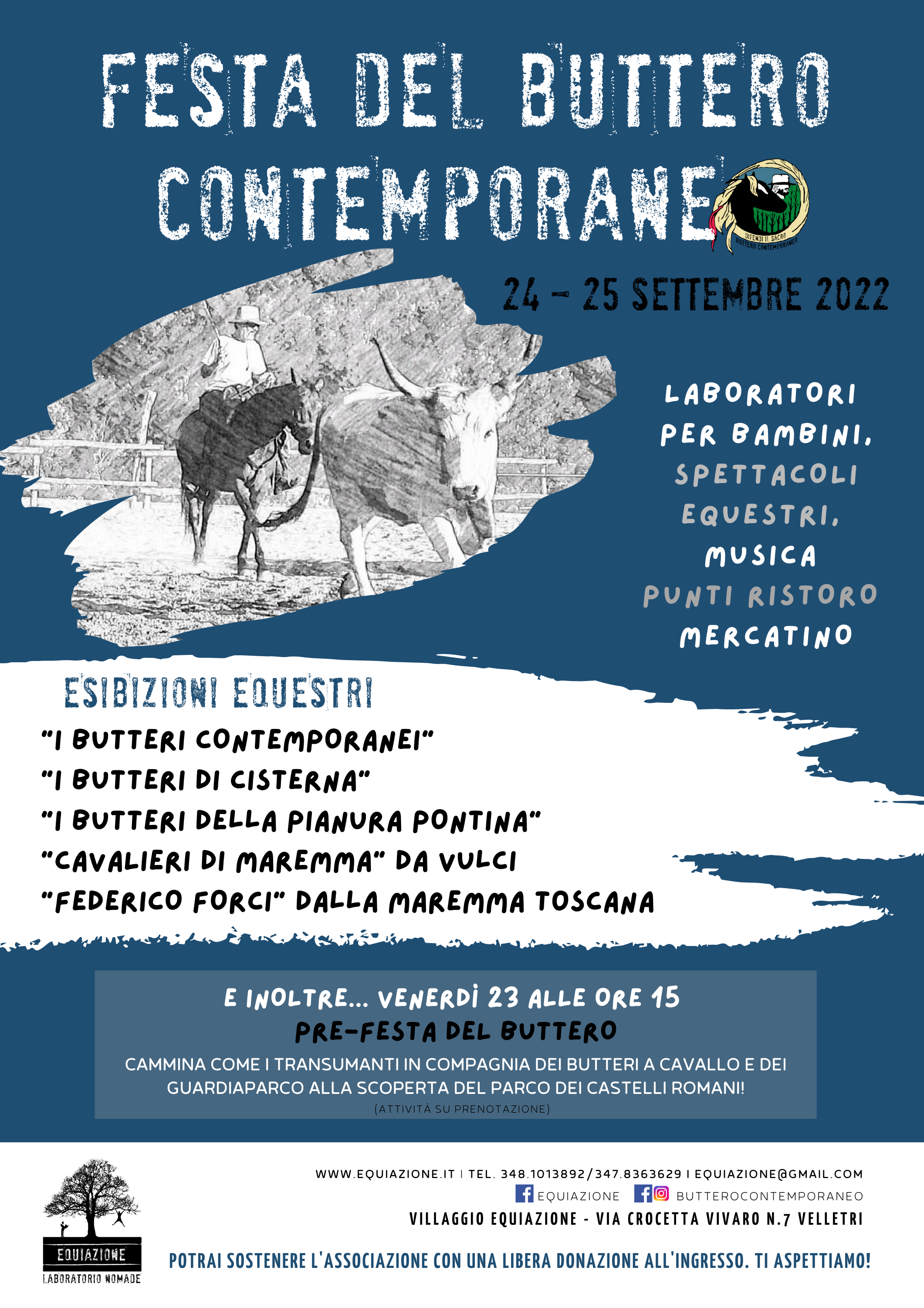 Quello del “Buttero Contemporaneo” è un progetto che promuove un’idea nuova di sviluppo di territorio e di comunità. A partire dalla relazione tra persone, tra persone e cavalli, e tra per- sone cavalli e territorio, parla di inclusione sociale, turismo, recupero delle tradizioni, cultura, identi- tà, benessere, ambiente. La Festa del Buttero Contemporaneo è l'occasione che Equiazione ha creato per celebrarne il significato. Quest’anno la Festa avrà come filo conduttore la “transumanza” e i valori che questa tradizione rappresenta.