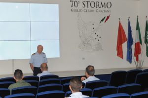 Dopo gli onori militari, il Generale Goretti è stato accolto dal Comandante del 70° Stormo, Colonnello Pilota Michele Grassi, il quale, nel corso di un breve briefing tenutosi presso l’aula “Graziani” ha illustrato la situazione infrastrutturale della Base, soffermandosi in particolare sui lavori di ammodernamento in corso quali le nuove palazzine che andranno ad ospitare il 207° Gruppo Volo e gli alloggi allievi, nonché i lavori di adeguamento infrastrutturale della mensa unica, programmati e realizzati in un’ottica di efficientamento energetico.