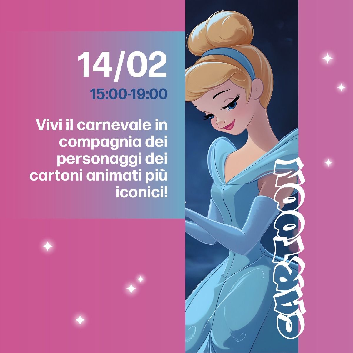 Vivi il Carnevale insieme ai personaggi dei cartoni animati più leggendari tra animazione, giochi, musica e la grande parata in galleria!