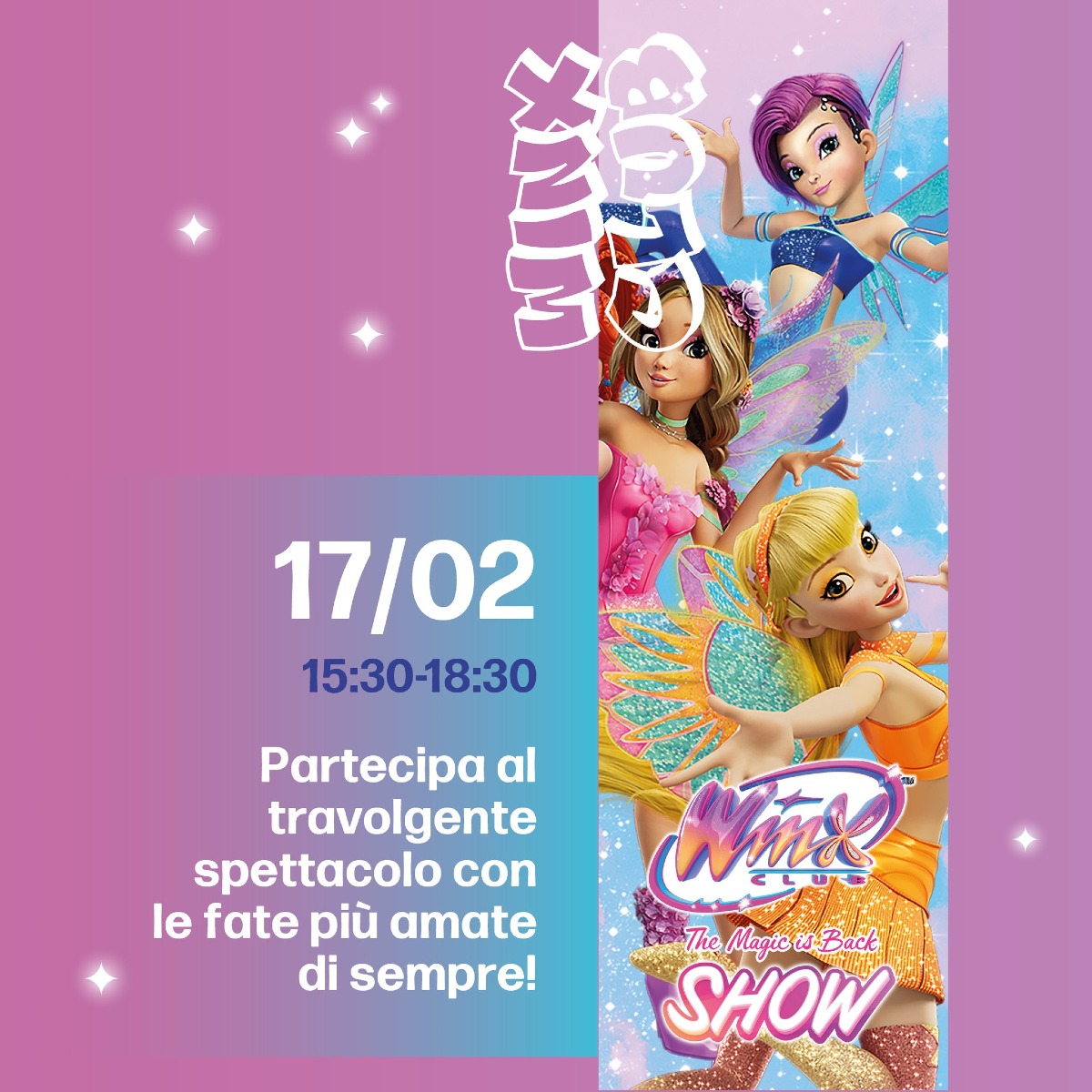 Infine lasciati travolgere dallo spettacolo delle fate più amate di sempre con il Winx Club - The Magic is Back - Show! Winx Club Luca Panzieri - Live Productions