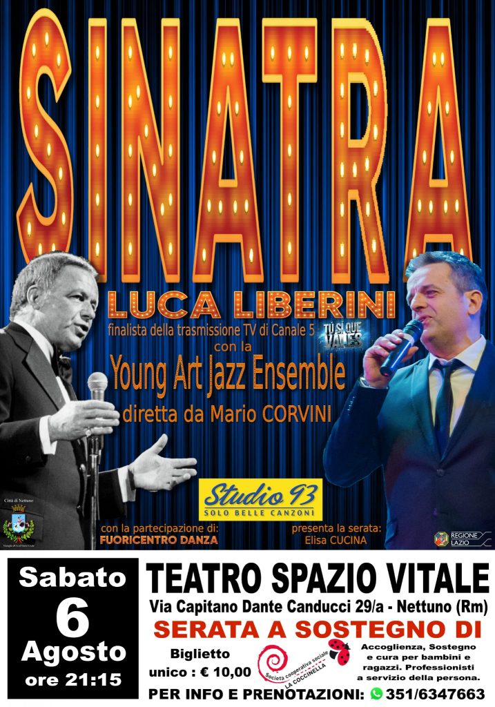 Il finalista di “Tu si que Vales” Luca Liberini questa sera, sabato 6 agosto incanterà il pubblico del Teatro Spazio Vitale di Nettuno con suo repertorio di Frank Sinatra. Liberini salirà sul palco alle 21.15 assieme alla “Young Art Jazz Ensamble”, composta da 17 elementi, e diretta dal Maestro Mario Corvini. Radio Studio 93 è media partner dell’evento. La serata sarà a sostegno dei ragazzi della Cooperativa Sociale “La Coccinella” di Anzio. Il costo del biglietto è di soli 10 euro.