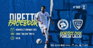Fischio di inizio alle 14.30 di domenica 27 novembre per la trasferta del Pomezia, atteso allo stadio "San Ciro" di Portici. La sarà trasmessa in diretta streaming, ma a pagamento, sulla pagina Facebook della società campana.