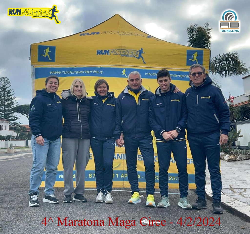 La domenica successiva è stata la volta della 4^ Maratona Maga Circe, inserita nel nostro calendario sociale, prevedeva una triplice distanza, una Maratona, una 28 km ed una 10 km, tutte con arrivo in piazza del Comune a Sabaudia. Le due gare più lunghe partivano da San Felice Circeo mentre la 10 km partiva sempre da Sabaudia. Un’organizzazione impeccabile, trasferimento dei podisti su navetta da Sabaudia a San Felice, ritiro degli effetti personali per riportarli al traguardo. Oltre ai nostri 13 atleti/e presente anche il nostro gazebo al 15° km con 6 soci tra cui anche il nostro Presidente e Vice Presidente, per dare una mano agli organizzatori e ristoro a tutti i partecipanti della 28 e 42 km.