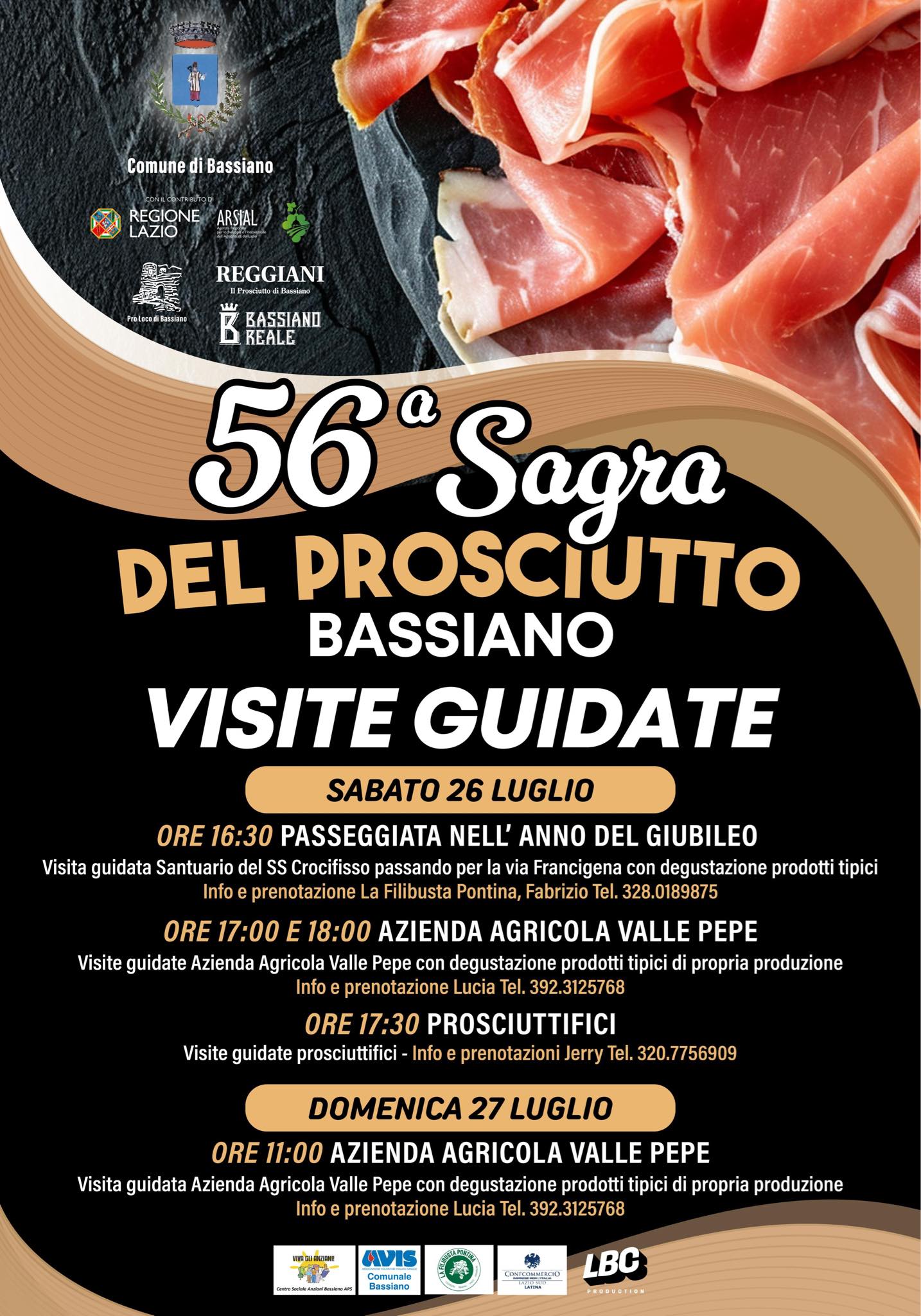 Clou della Sagra sarà come da tradizione la giornata di domenica 27 luglio con la “degustazione itinerante” del prosciutto per le vie del centro storico, e la proiezione del video promozionale “Bassiano: Bellezza ed Eccellenze”, realizzato da Mattia Ercole: un viaggio emozionante tra storia, tradizioni e sapori unici.