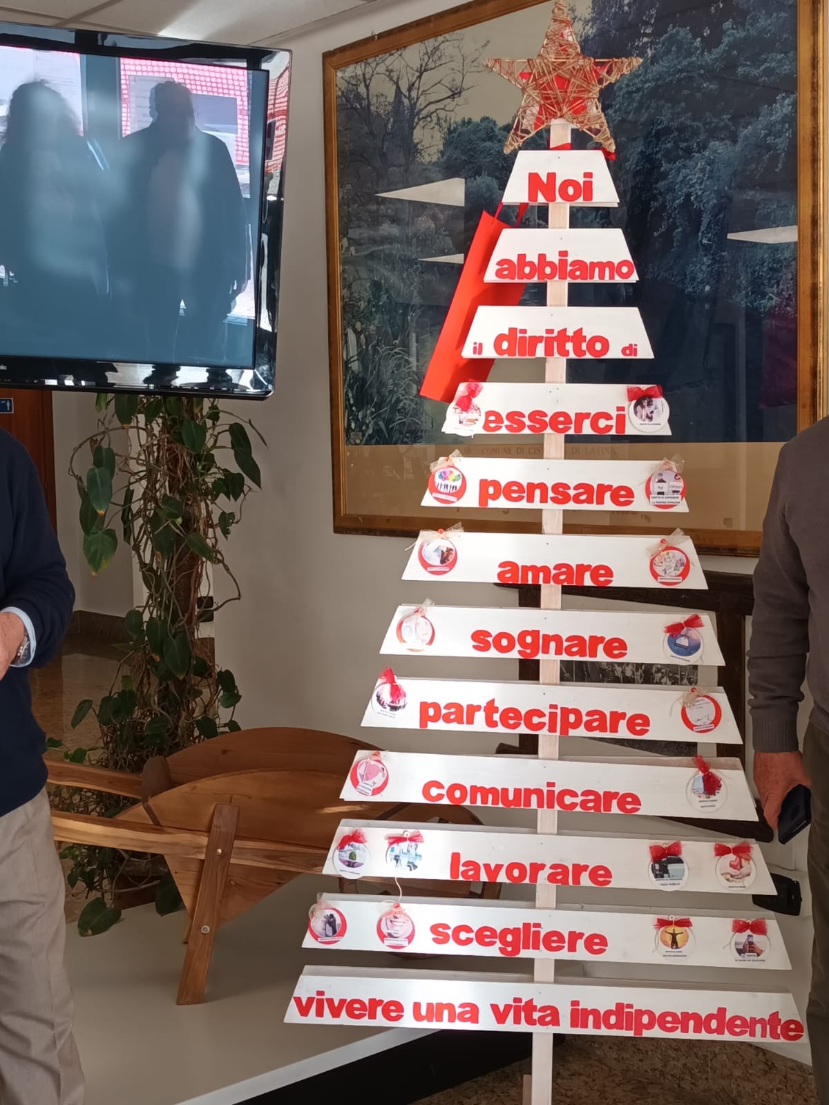 I ragazzi del Centro Diurno “Agorà” di Cisterna questa mattina sono tornati in Comune ed hanno allestito, come ormai da consolidata tradizione, l’Albero di Natale dei diritti nell’atrio del Palazzo dei servizi di via Zanella.