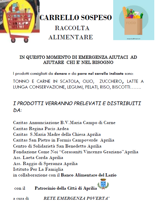 Da qualche giorno,anche ad Aprilia,un gruppo di associazioni ed enti caritatevoli impegnati quotidianamente a contrastare la povertà del territorio,hanno attivato l’iniziativa Carrello Sospeso in tant...